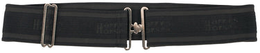 Vollelastischer Sattelgurt mit silberfarbenem Koppelverschluss. Weitenverstellbares, 8 cm breites Gummiband.