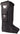 Tasche in Stiefelform, mit (Doppel-)Reißverschluss vorne. Mit kleiner Tasche, die mit einem Druckknopf verschlossen werden kann (z. B. für Sporen). Zwei Tragegriffe oben an der Tasche, die mit einem Lederstück aneinander befestigt werden können, einer davon mit Klettverschluss.