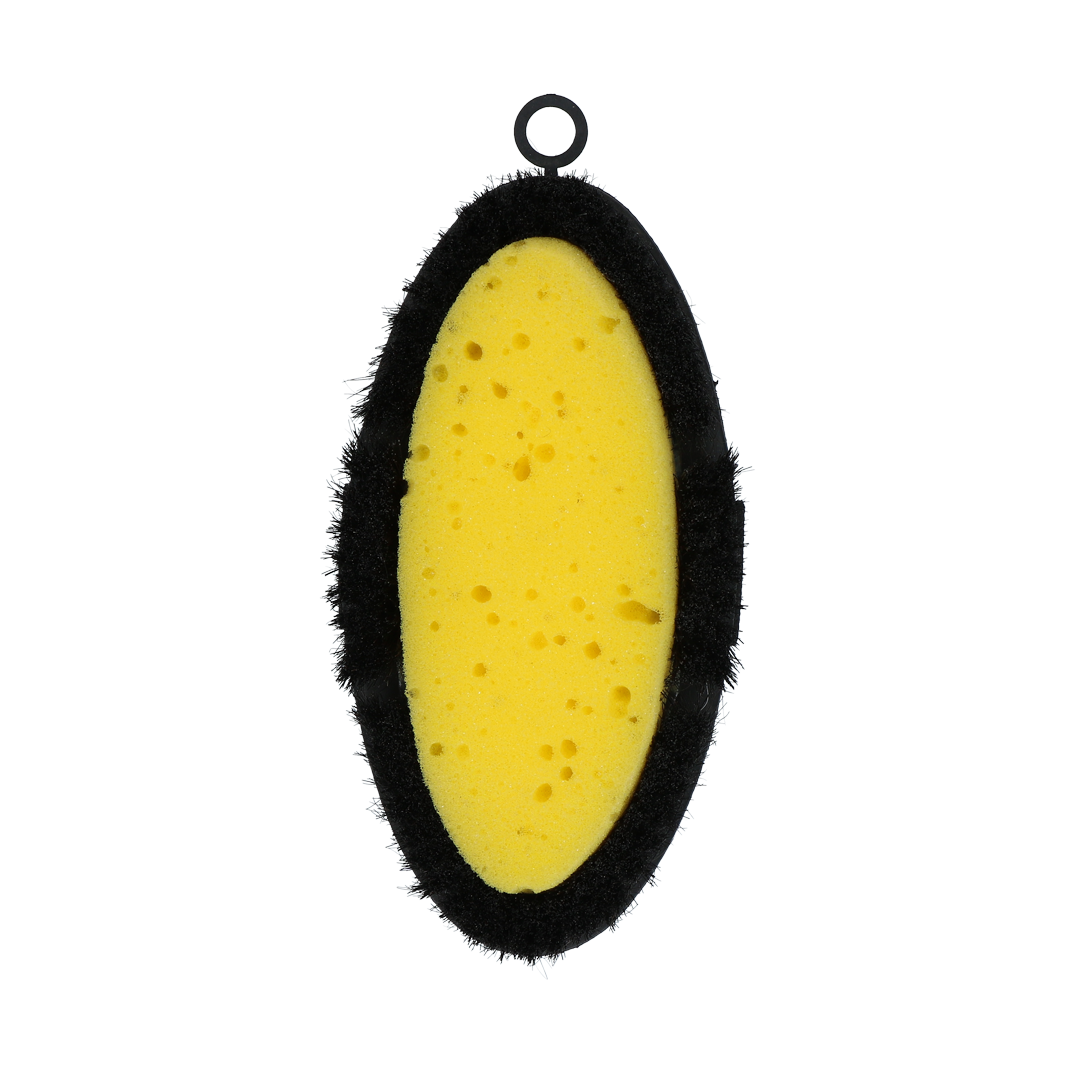 Der Schwamm nimmt Wasser und Shampoo hervorragend auf und das Rosshaar entfernt Schmutz effektiv.
