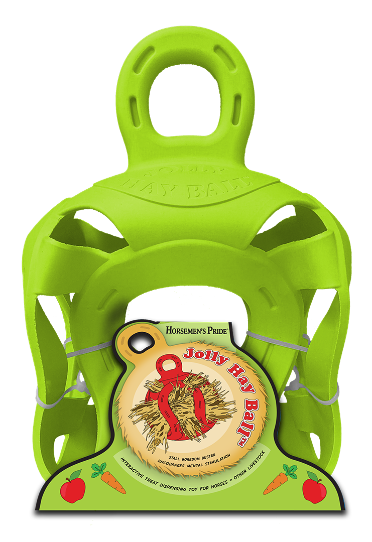 Füllen Sie den Jolly Hay Ball mit Heu und füllen Sie die kleineren Öffnungen mit Leckereien wie Äpfeln oder Karotten. So ist Ihr Pferd eine Weile beschäftigt.