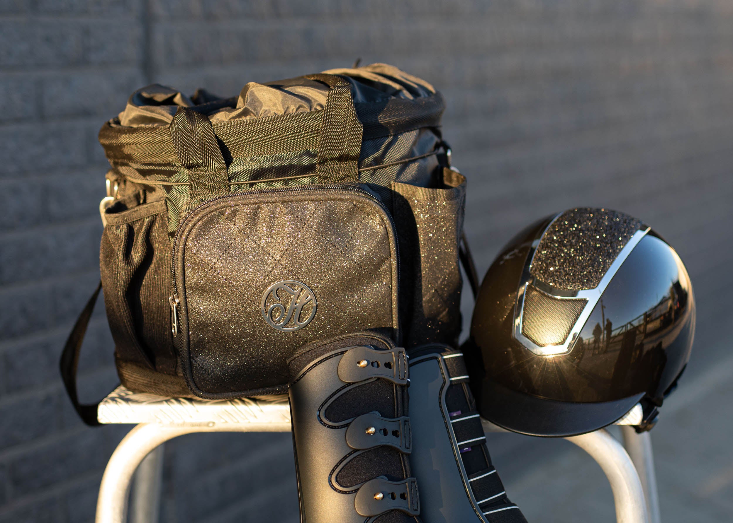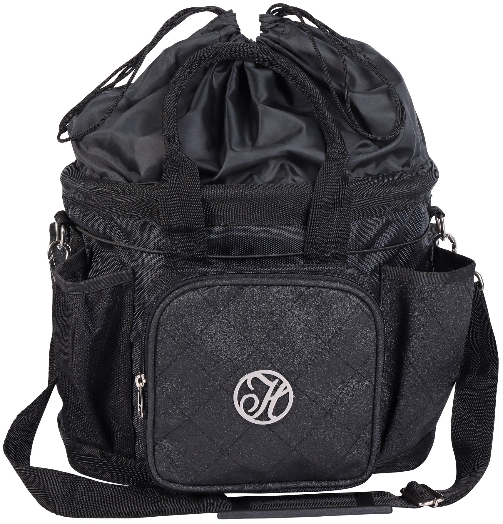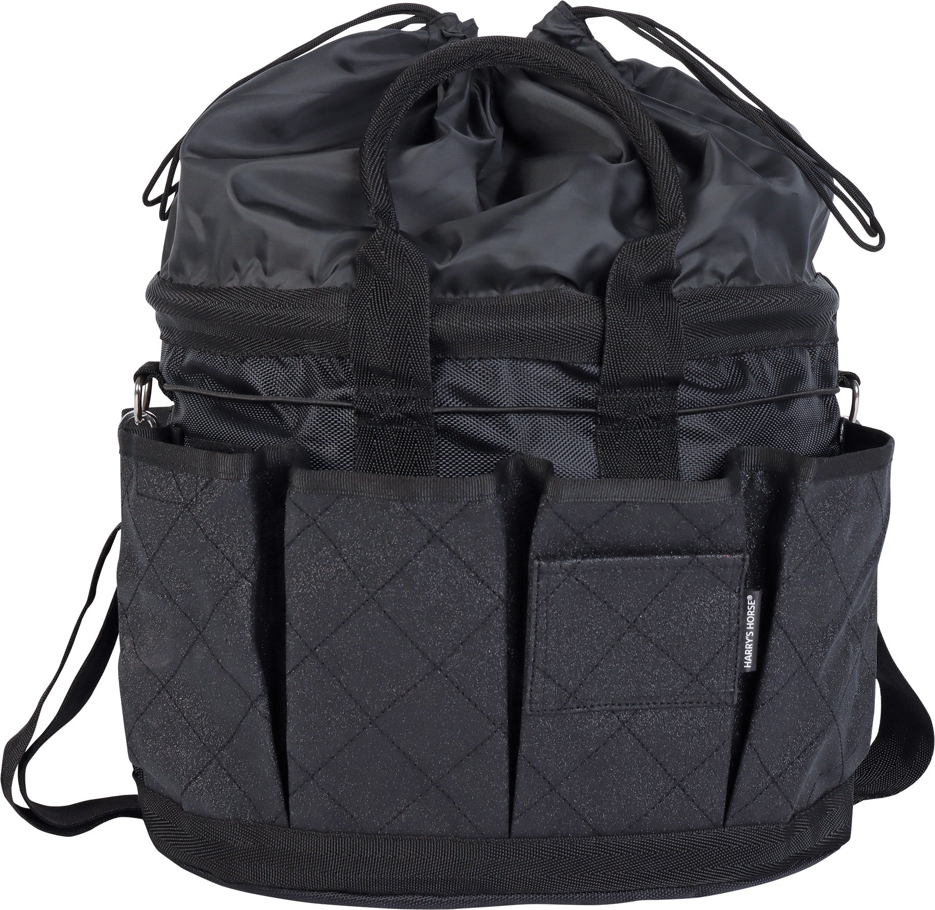 Stilvolle Pflegetasche mit zahlreichen Fächern! Der Deckel lässt sich mit einem Kordelzug verschließen. Die Tasche verfügt über je eine Reißverschlusstasche innen und außen.