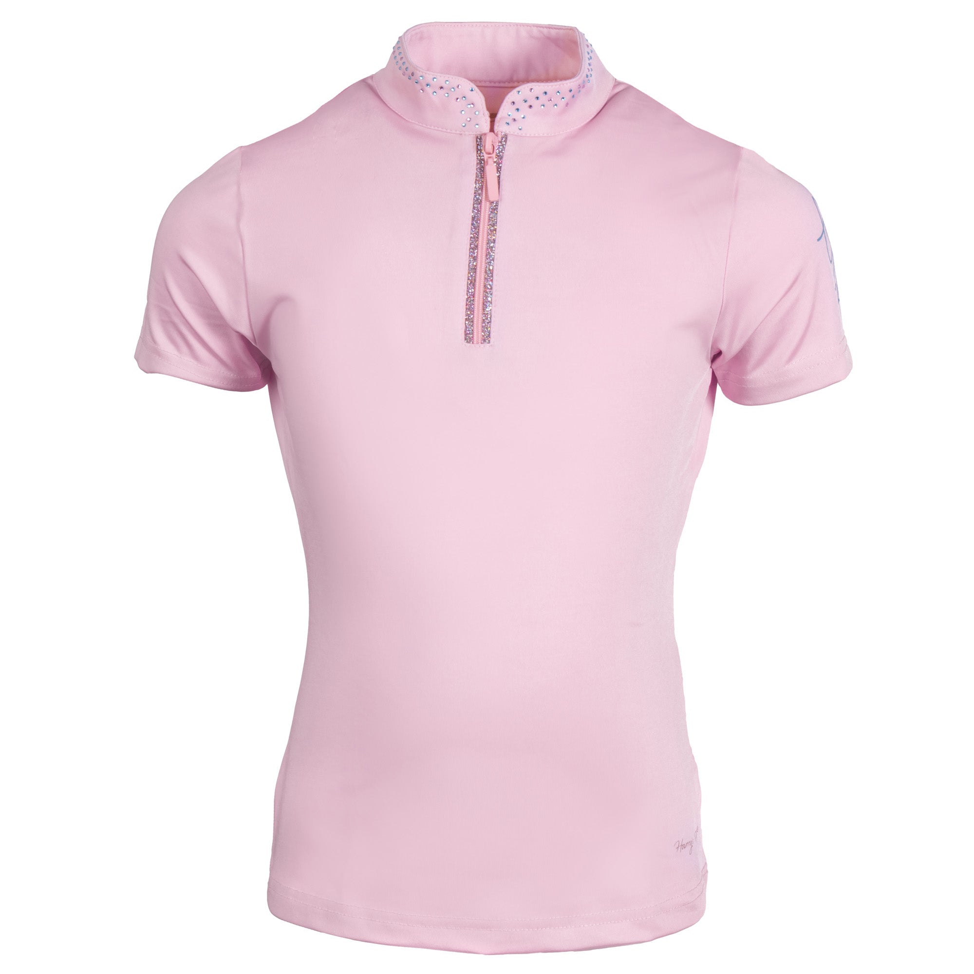 T-Shirt mit Stehkragen mit Kristallen, kurzem Reißverschluss mit Glitzerbesatz und dem LouLou-Logo auf dem linken Ärmel.