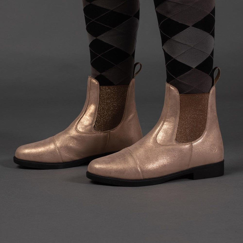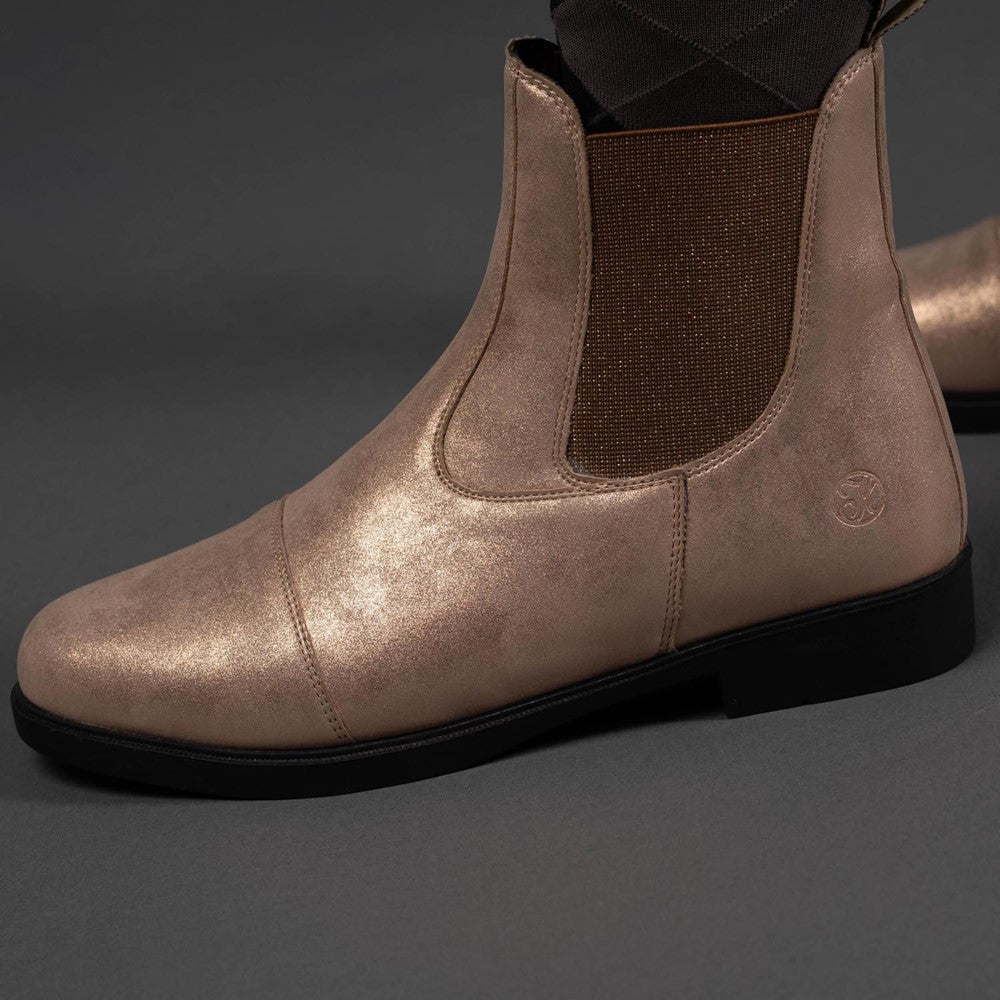 Jodhpur aus Kunstleder mit roségoldenem Glitzereffekt mit elastischem Einsatz mit Glitzer und einer Gummisohle.