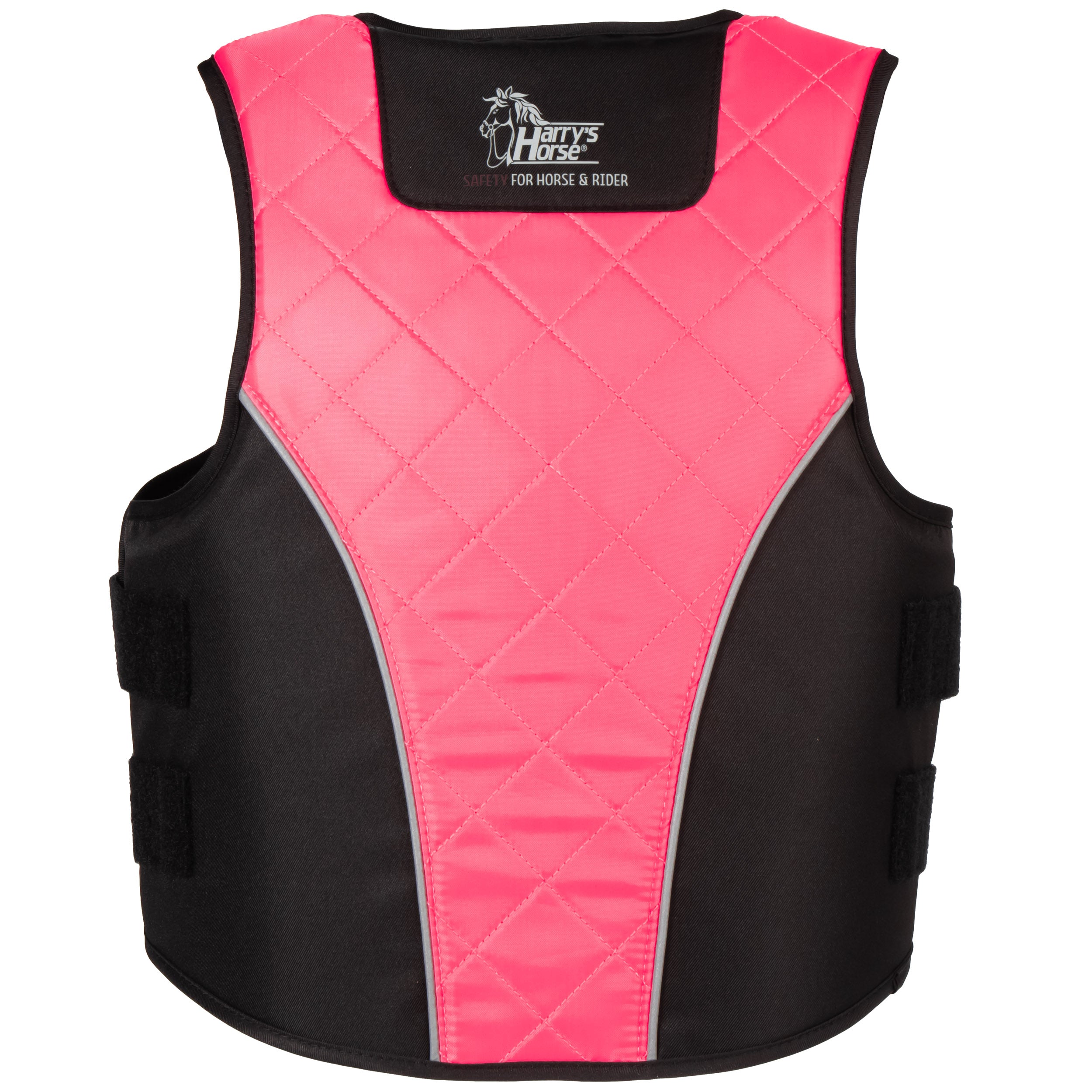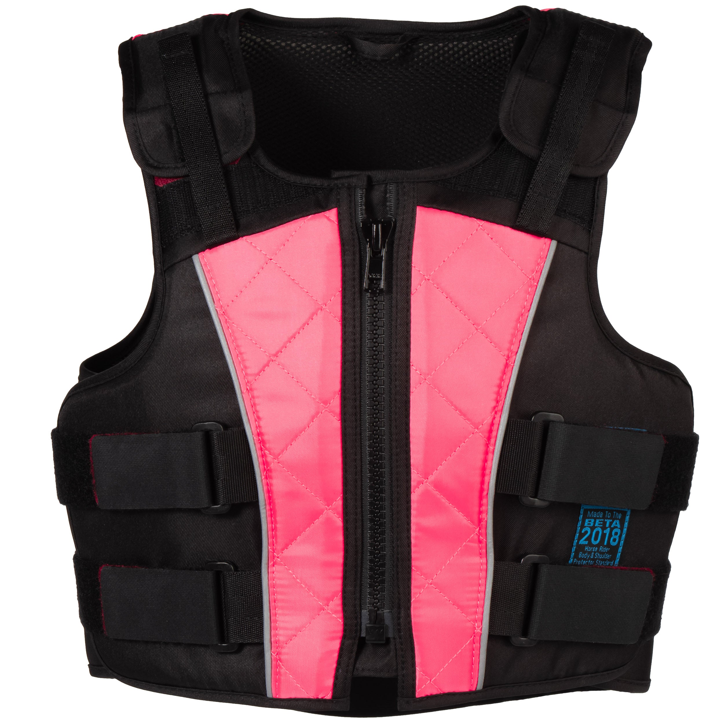 Dieser Körperprotektor erfüllt internationale Standards, darunter EN13158 (Klasse 3) und BETA 2018 (Level 3). Dadurch ist er für alle offiziellen Wettkämpfe geeignet. Dank flexibler „Soft Foam“-Einsätze bietet er optimale Passform und hohen Tragekomfort. Die Körperwärme verbessert die Passform und Flexibilität zusätzlich. Er lässt sich an Schultern und Taille einfach per Klettverschluss anpassen. Vorder- und Rückseite sind aus pinkfarbenem Material gefertigt, und er verfügt über einen Frontreißverschluss.