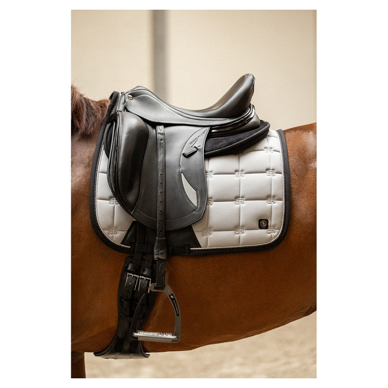 Il elegante coprisella CLX è trapuntato a quadri con cuciture del logo BR per un look unico ed è rifinito con due sottili bordi. Il coprisella è dotato di passanti regolabili per sella e sottopancia con velcro e di un rinforzo extra in pelle sintetica sul passante del sottopancia.