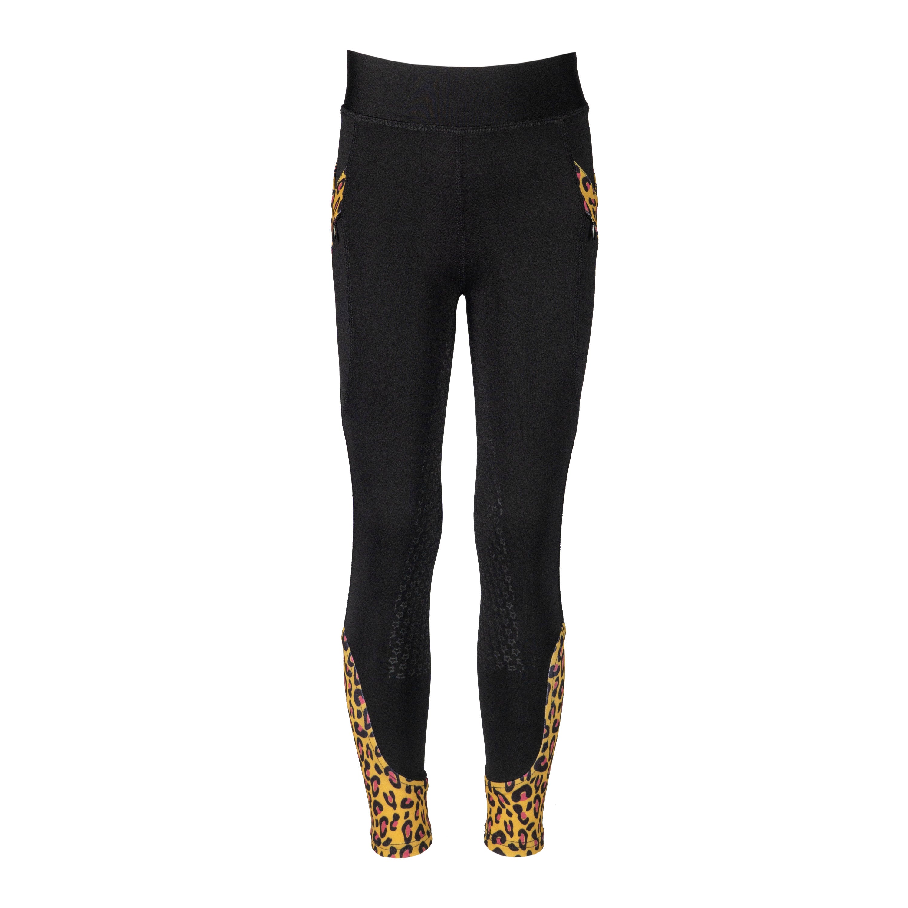 Junior-Reitleggings mit Leopardenmuster an Knöcheln und Taschen. Die Kylie verfügt über zwei Reißverschlusstaschen und einen matten Silikon-Vollbesatz. Produktspezifikationen: Junior-Reithose Zwei Reißverschlusstaschen, tief genug für ein Mobiltelefon Leopardenmuster-Elastan-Söckchen Leopardenmuster-Details um die Taschen Matt bedruckter Silikon-Vollbesatz Material: 93 % Polyester, 7 % Elastan gewebt