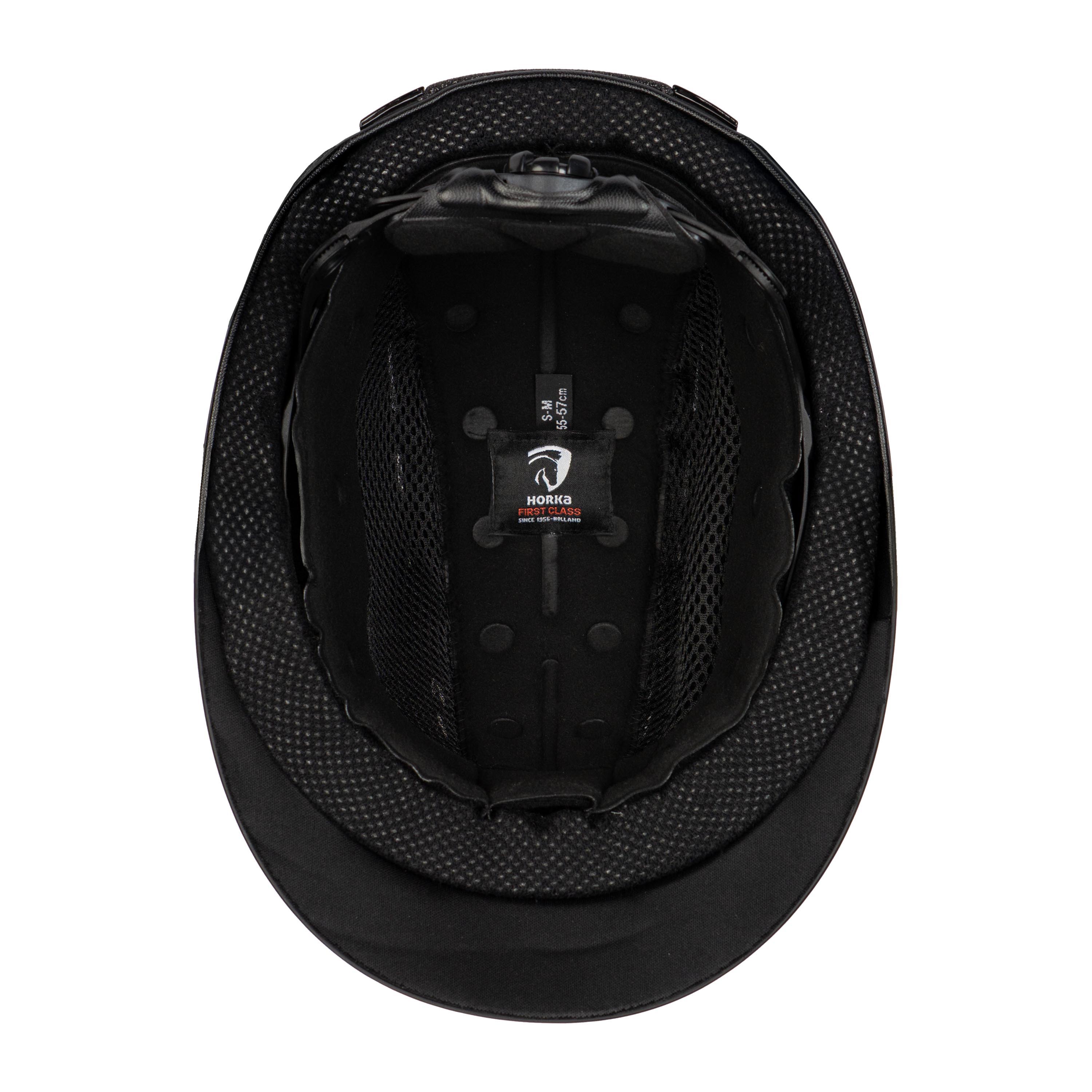 Leichter Schutzhelm. Der Helm ist EN1384:2023 zertifiziert. Produktspezifikationen: Gut belüfteter 4-Punkt-Sicherheitsgurt in Kunstlederoptik Größenverstellbares System mit Drehknopf Herausnehmbares und waschbares Innenfutter Größen: XS/S = 51-55 cm S/M = 55-57 cm M/L = 57-59 cm L/XL = 59-61 cm