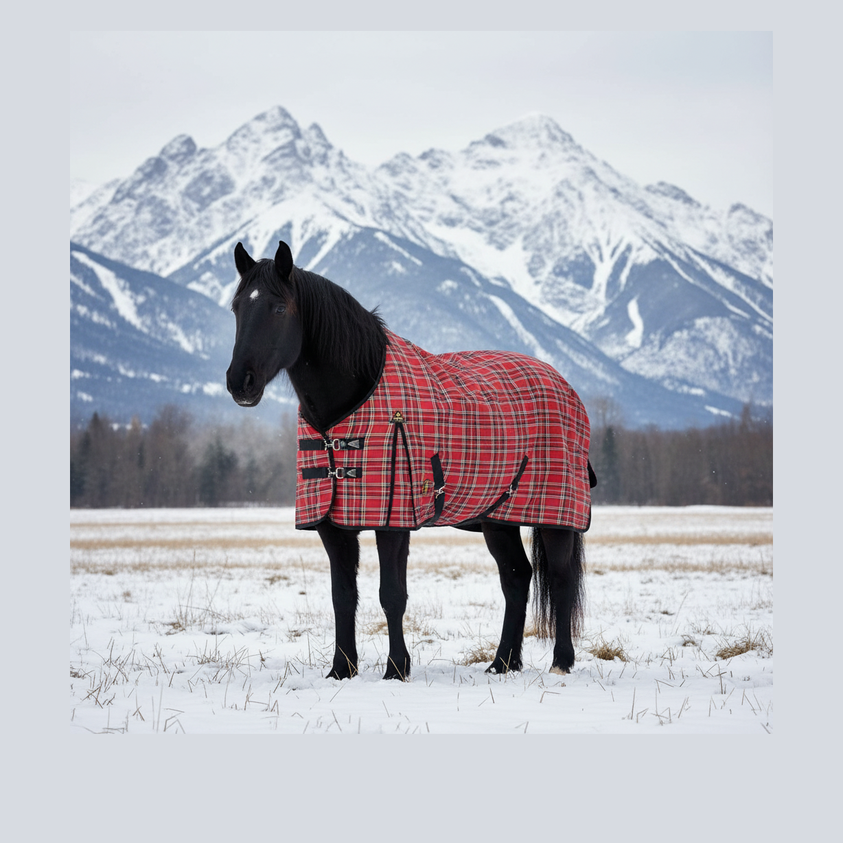 Deze mooie regendeken is verkrijgbaar in verschillende maten, van grote paarden tot kleine minipaarden. De deken is ideaal als extra bescherming tegen regen en wind op de natte dagen of juist als overgangsdeken. De MHS Regendeken 100 gram Red Blocks is 3000 mm waterdicht en 3000 g/m2 24u ademend, waardoor jouw paard altijd comfortabel blijft.