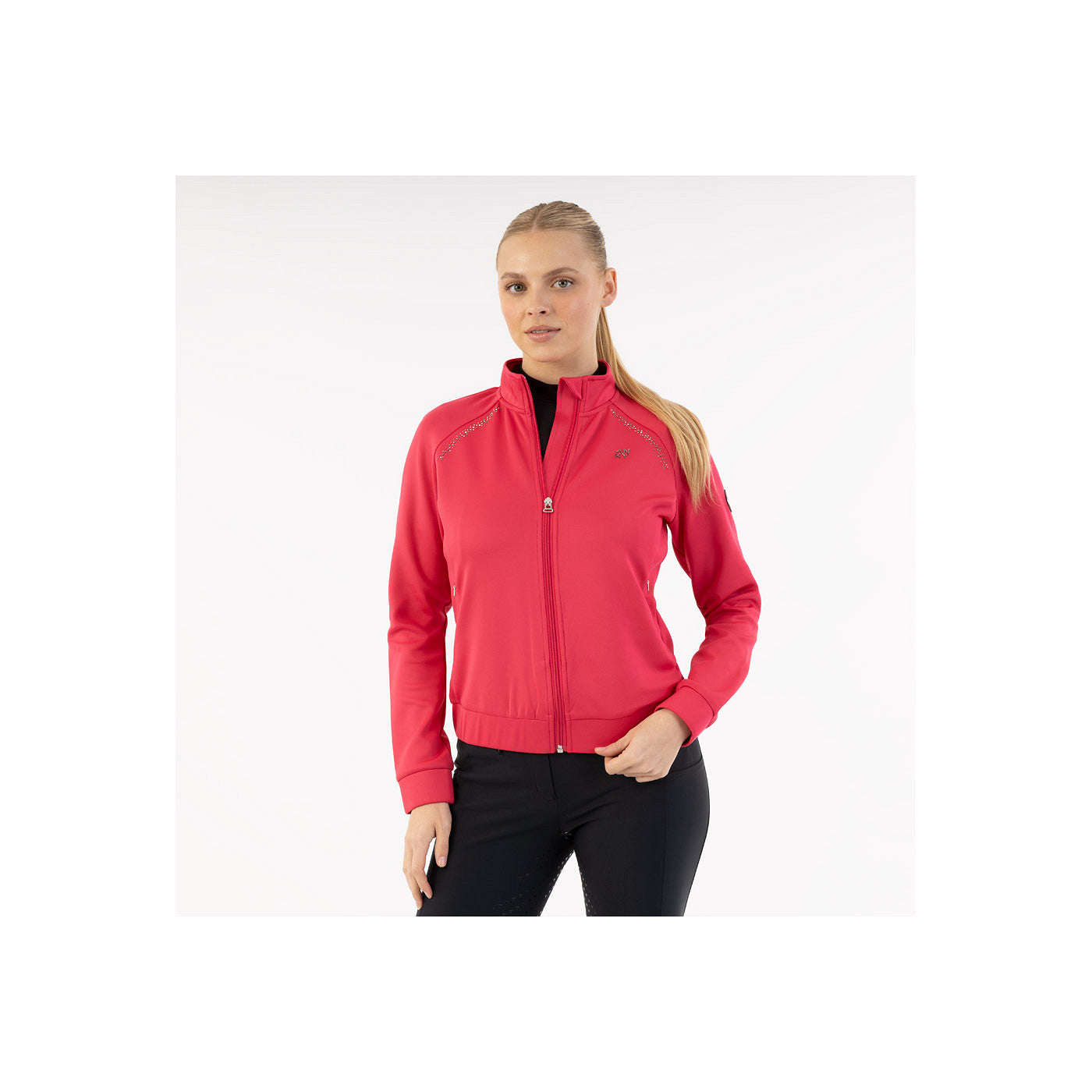 - Artwork van strass-steentjes langs de raglannaden aan de voorzijde