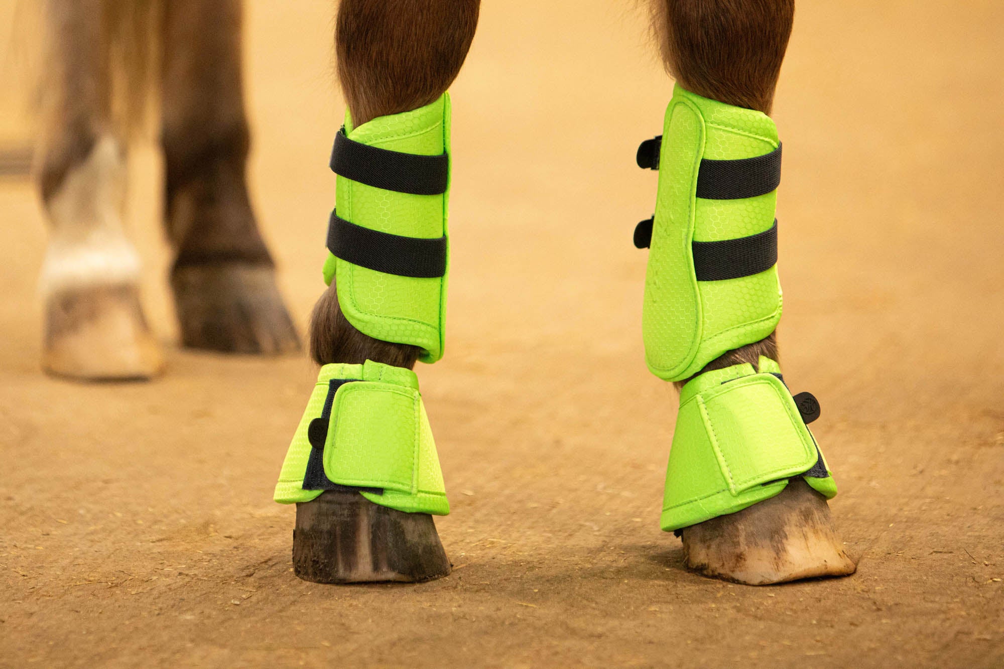 Beenbeschermers met een elastische klittenbandsluiting. De binnenkant is gevoerd met geperforeerd neopreen voor een optimale warmteafvoer en schokabsorbatie. De beschermers kunnen in de wasmachine op 30 graden gewassen worden.