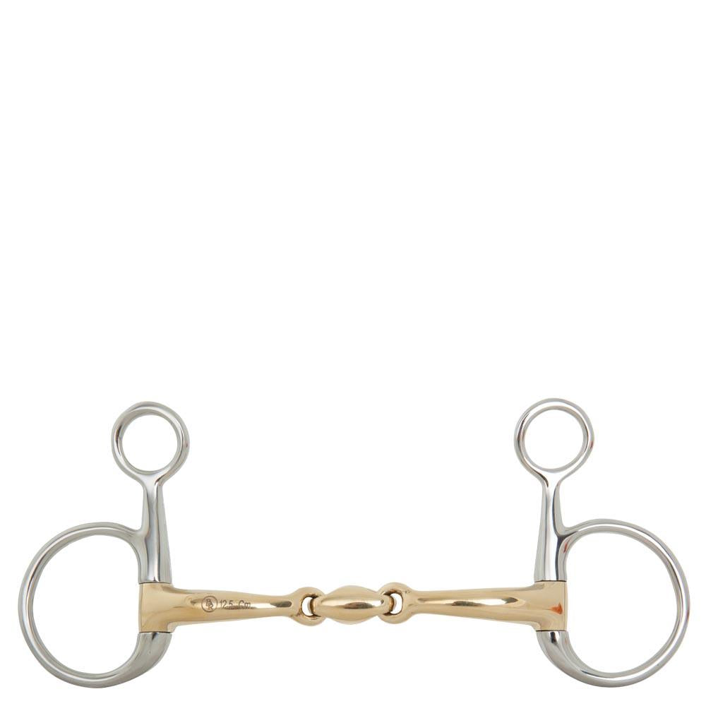 Bij een dubbel gebroken bit bestaat het mondstuk uit drie delen. Het middelste gedeelte van het mondstuk ligt plat op de tong. Hierdoor ontstaat er meer druk op de tong dan bij een enkel gebroken mondstuk. Hoe dikker het middenstuk, des te meer druk op de tong.