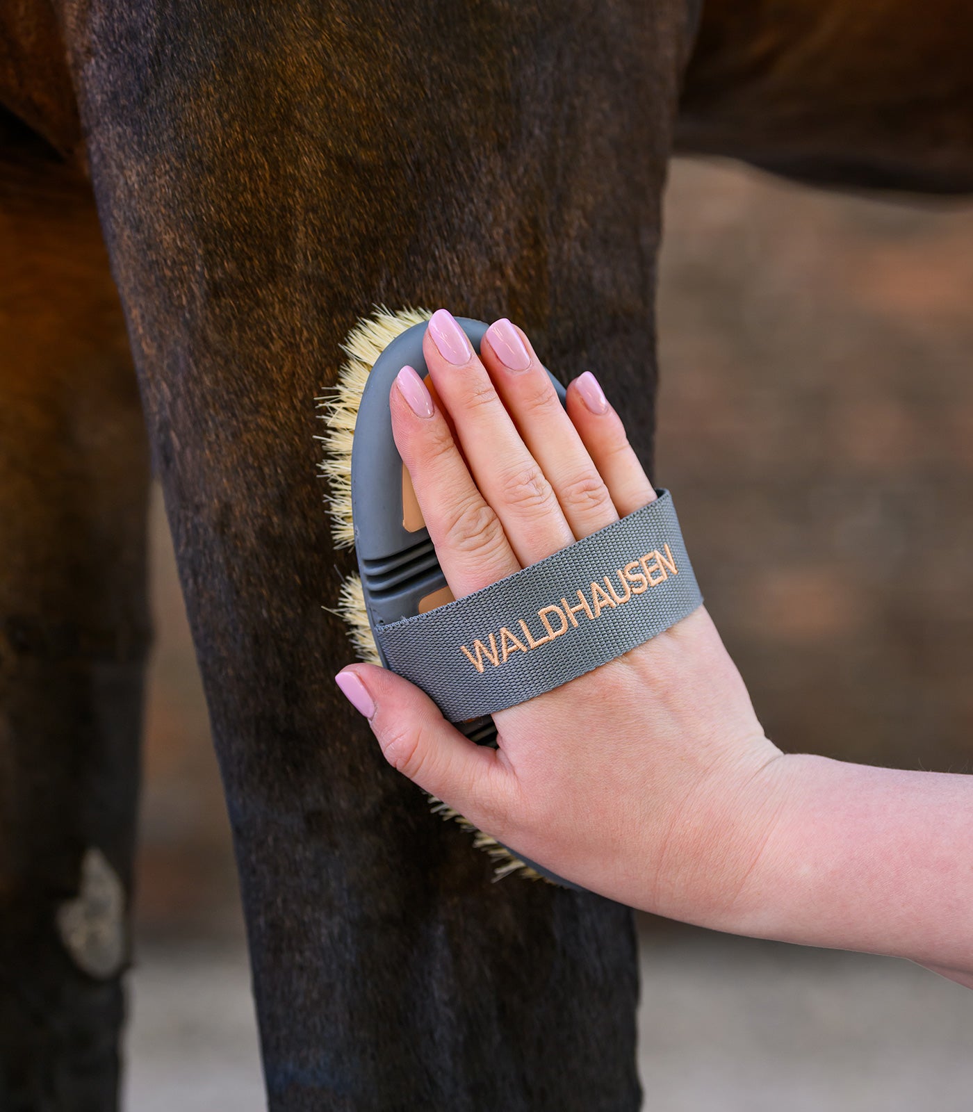 Dankzij de stevige, natuurlijke borstelharen is hij perfect voor het verwijderen van hardnekkig vuil, zoals modder, van het hele paard.