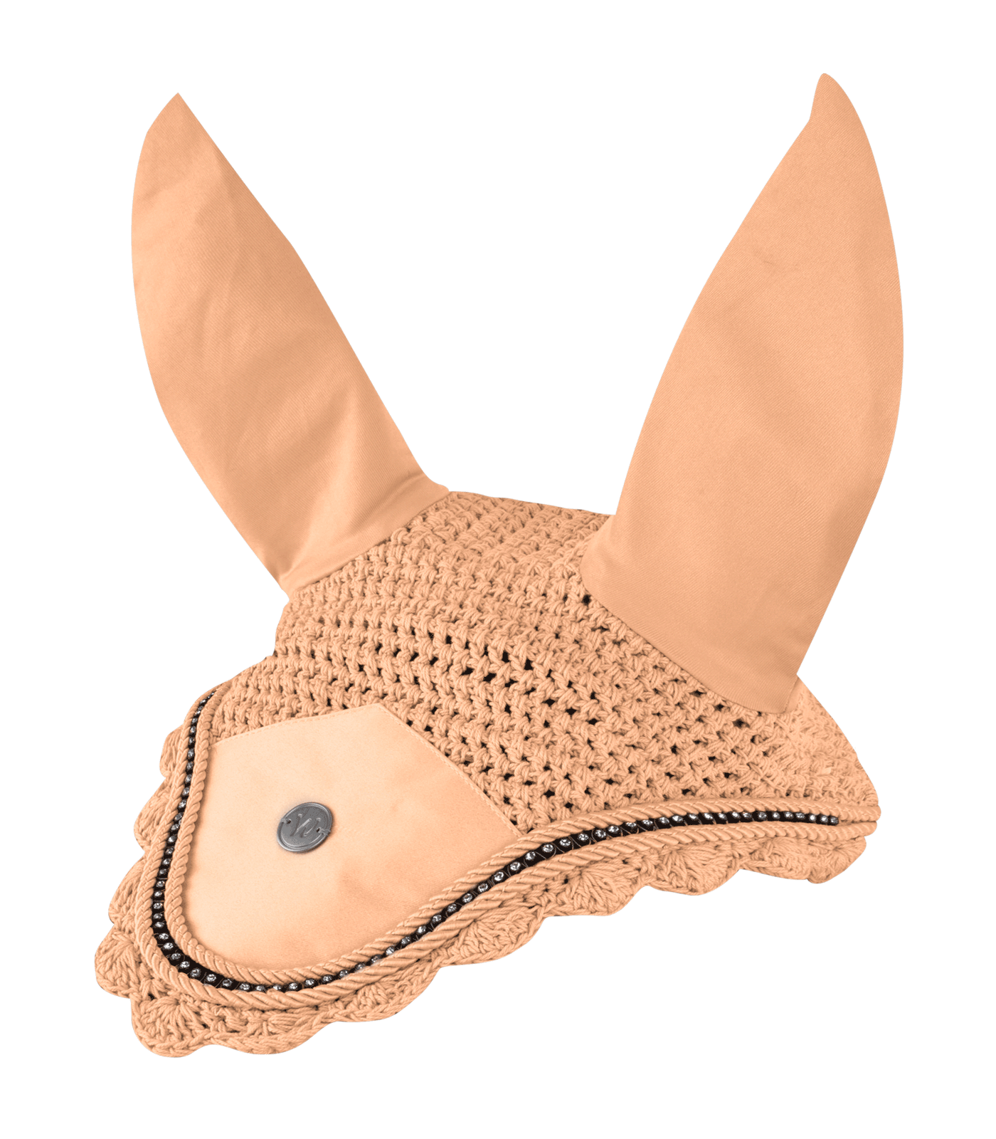 Hoogwaardig oornetje met elastische oren, perfect passend bij onze Turin-collectie. Een glinsterende strassband tussen twee bijpassende decoratieve koorden zorgt voor een elegante touch. De zilverkleurige metalen plaat is centraal geplaatst op een glanzende stoffen applicatie – voor een harmonieuze uitstraling als set. Het Turin oornetje biedt ook effectieve bescherming tegen hinderlijke insecten. Het elastische materiaal bij de oren zorgt voor een perfecte pasvorm op het hoofd van het paard.