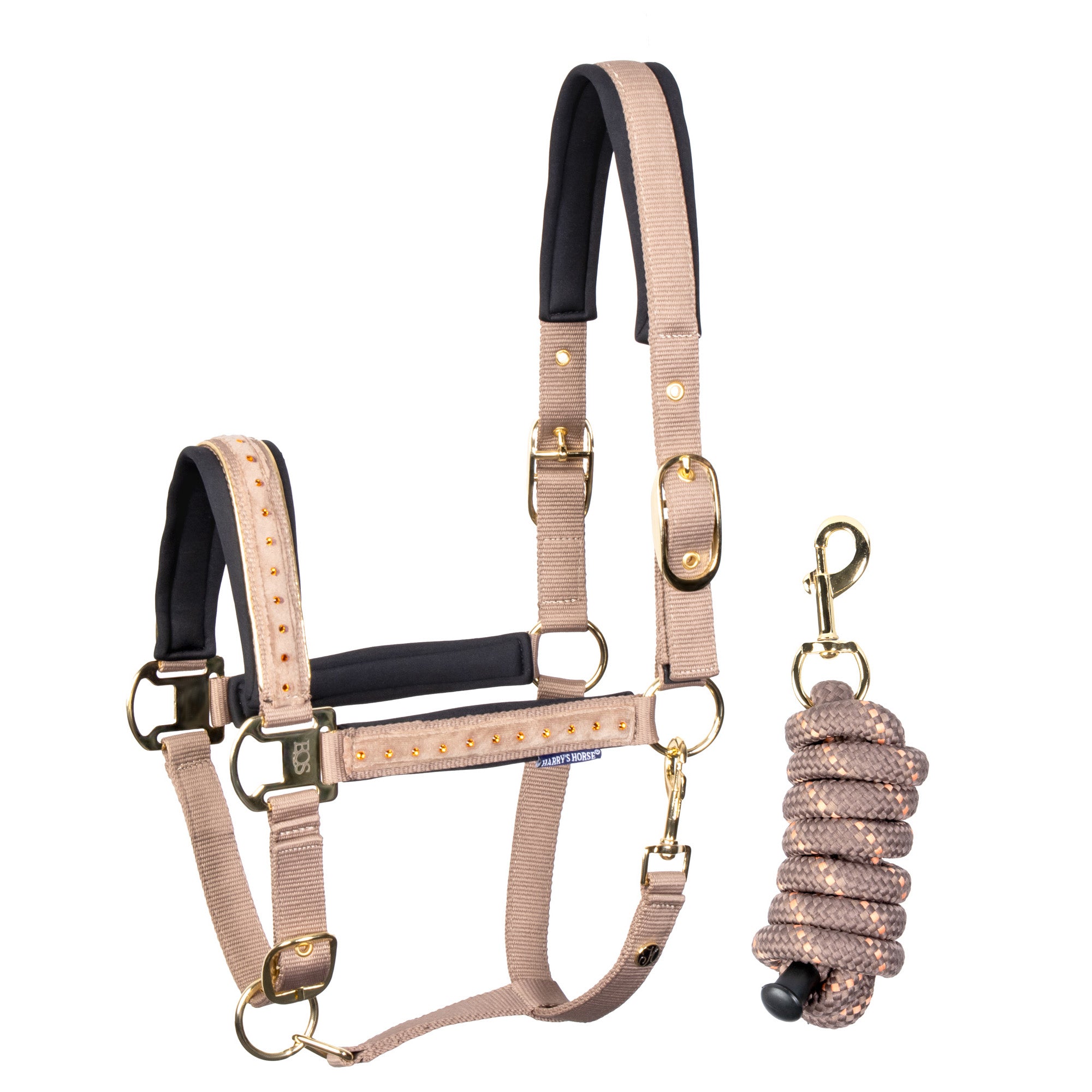 Dit luxe halster is stijlvol afgewerkt met fonkelende kristallen op de neusriem en bakstukken. Voorzien van zachte neopreen voering op alle contactpunten voor extra comfort en ter voorkoming van schuurplekken. Zowel het kopstuk (aan beide zijden) als de neusriem zijn verstelbaar voor een perfecte pasvorm. Geleverd inclusief bijpassend halstertouw van 2 meter.