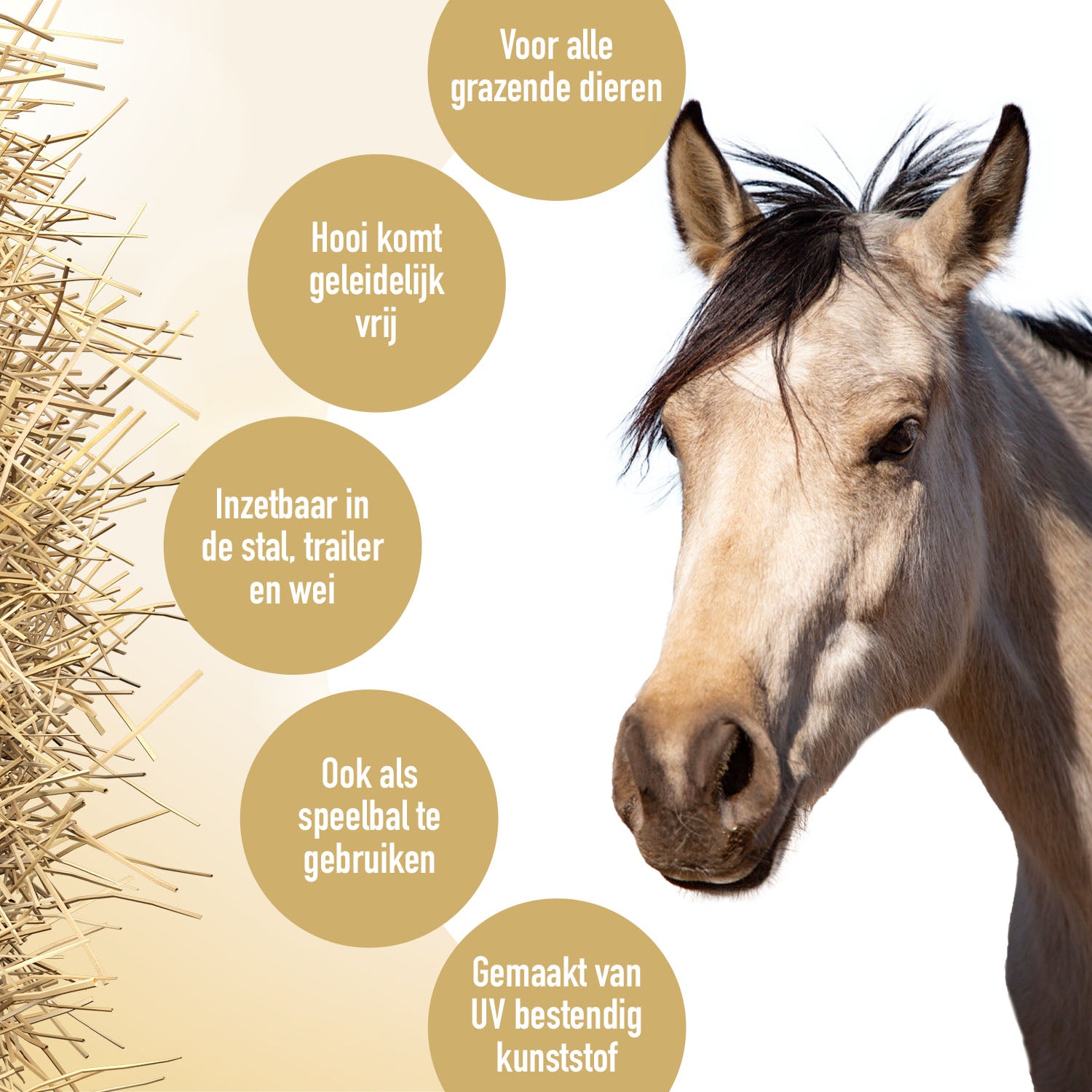 De Hay Slow Feeder Fun en Flex is een uniek product dat speciaal ontworpen is om uw paard langzaam te laten eten en tegelijkertijd verveling tegen te gaan. De bal is gemakkelijk te vullen met hooi en kan worden aangevuld met extra lekkernijen zoals groenten of kruiden, zodat uw paard urenlang bezig blijft. Dit is niet alleen goed voor de gezondheid van uw paard, maar ook voor zijn mentale welzijn.