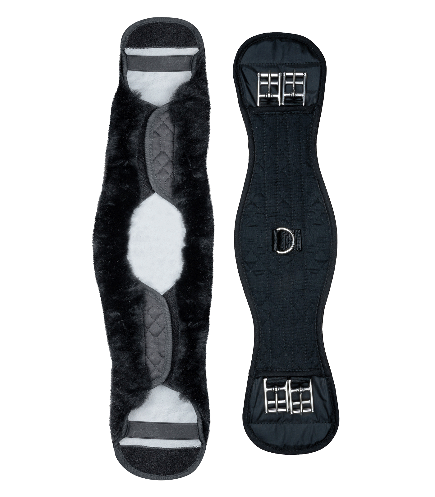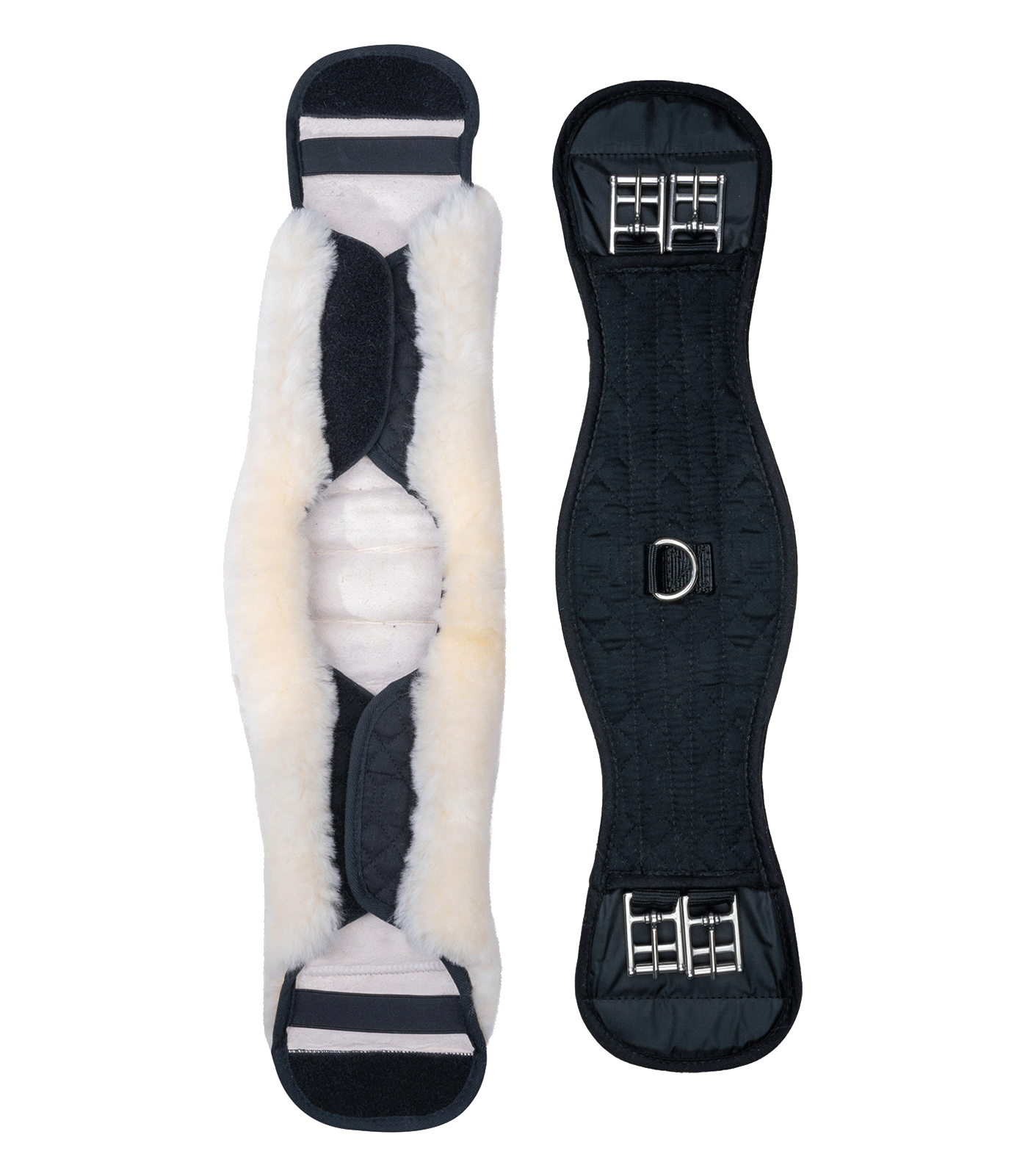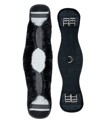 High-quality anatomical girth with real lambskin for optimum protection against rubbing and pressure points. The lambskin cover can be easily removed for washing thanks to the Velcro straps. With D-rings and stainless steel roller buckles, without elastic.