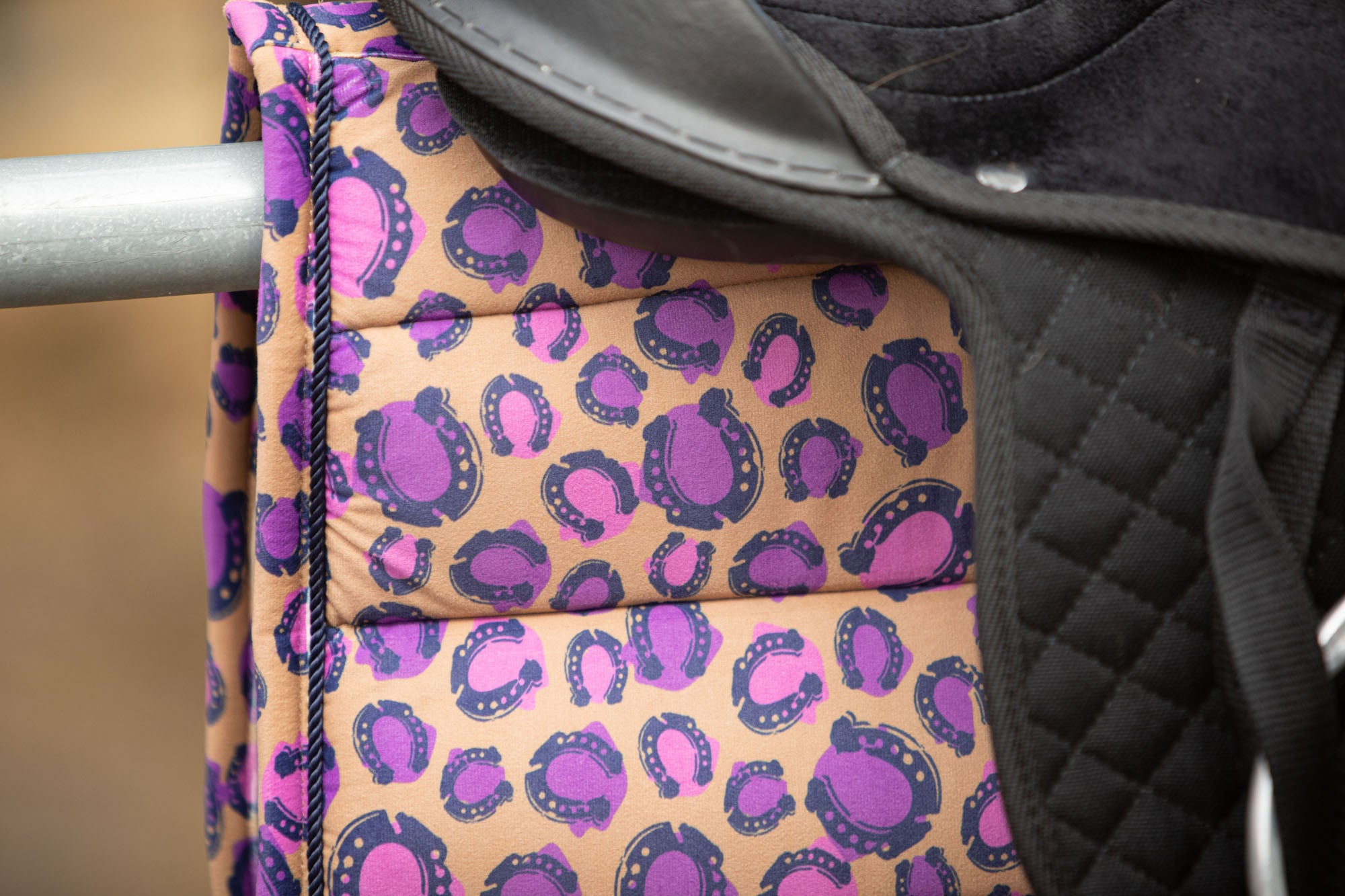 Velours zadeldek met allover print en singel- en zadellussen.