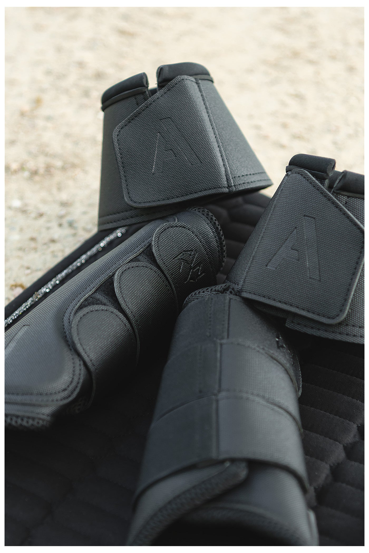 - Abgeschrägter Klettverschluss, um Reibung am Pferdebein zu verhindern