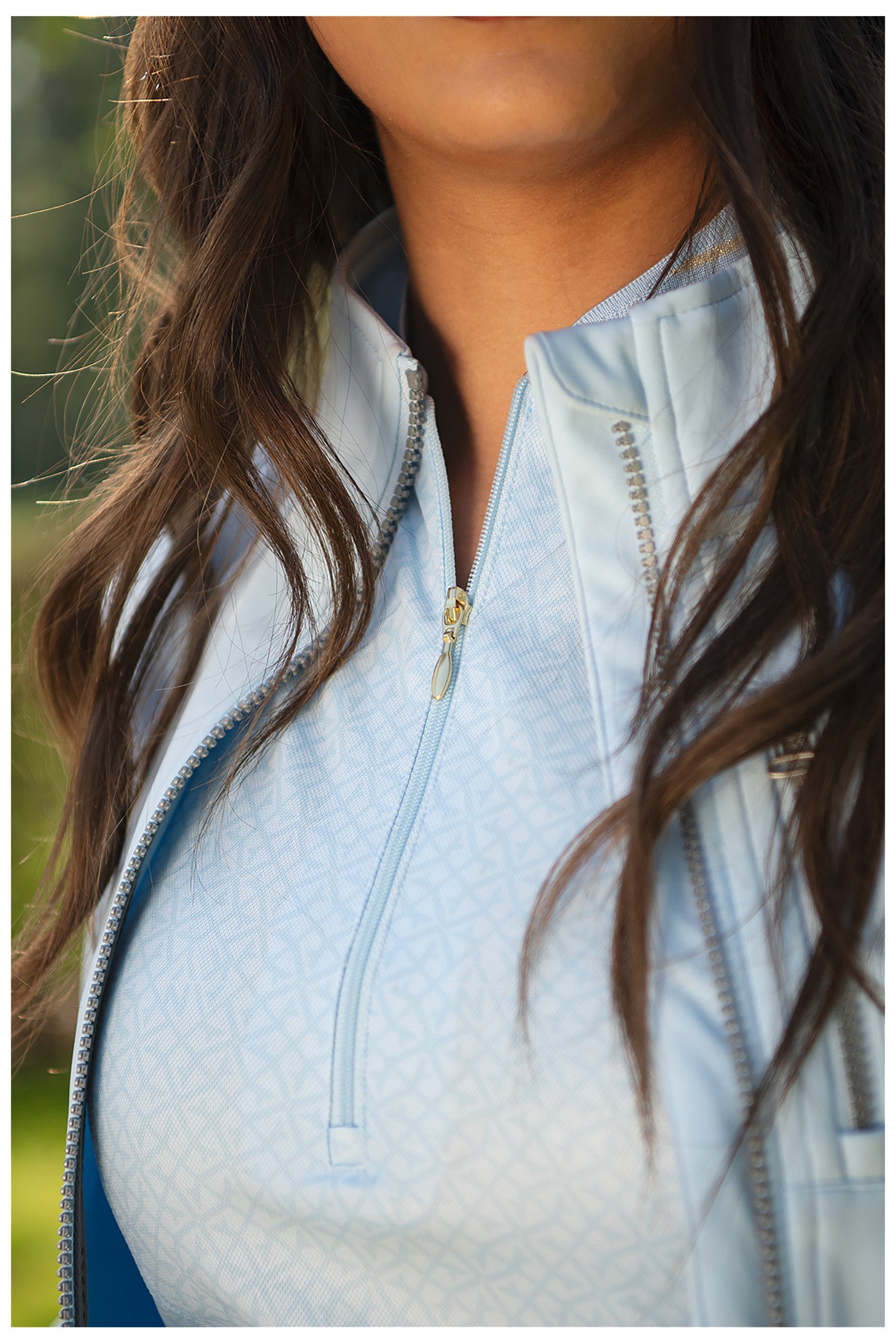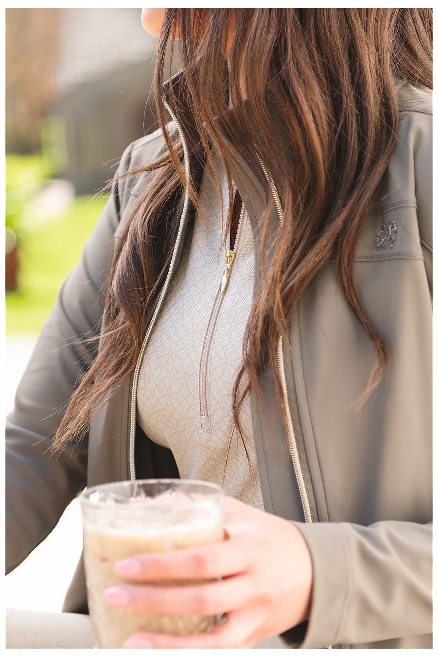 - Vorderverschluss mit spiralförmigem Reißverschluss in passender Farbe