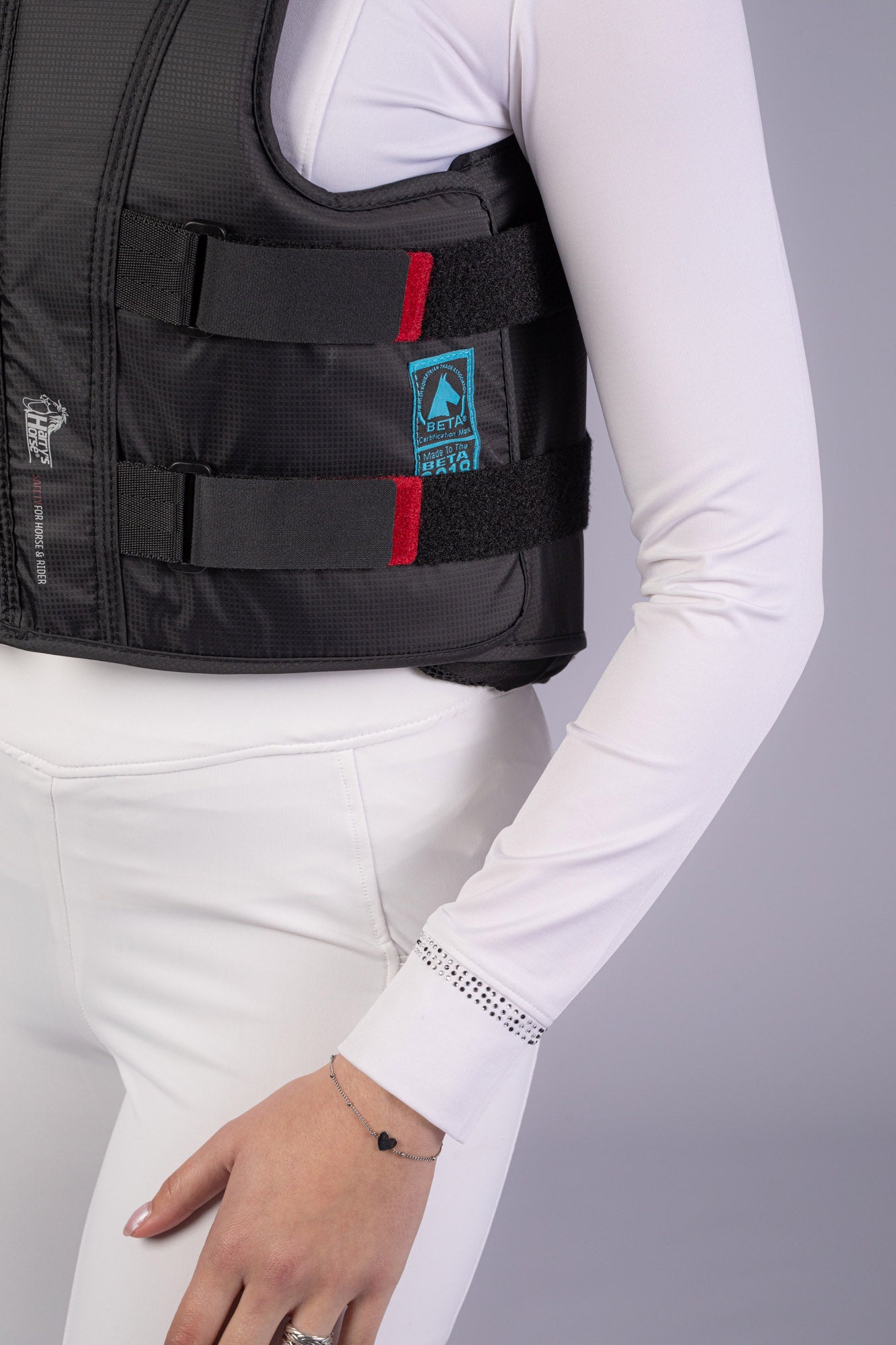 Bodyprotector welke voldoet aan de volgende internationale standaards, o.a. norm EN13158:2009 klasse 3 en BETA 2018 level 3 wat deze bodyprotector geschikt maakt voor alle officiële wedstrijden. Deze bodyprotector is opgebouwd uit flexibele "Soft Foam"- panelen voor een optimale pasvorm en aangenaam draagcomfort. Door het aannemen van de lichaamswarmte zal de bodyprotector nog beter aansluiten en soepeler worden. De bodyprotector is eenvoudig verstelbaar d.m.v. klittenbandsluiting op de schouders en in de taille. Voorzien van reflecterende biezen en een ritssluiting aan de voorzijde.