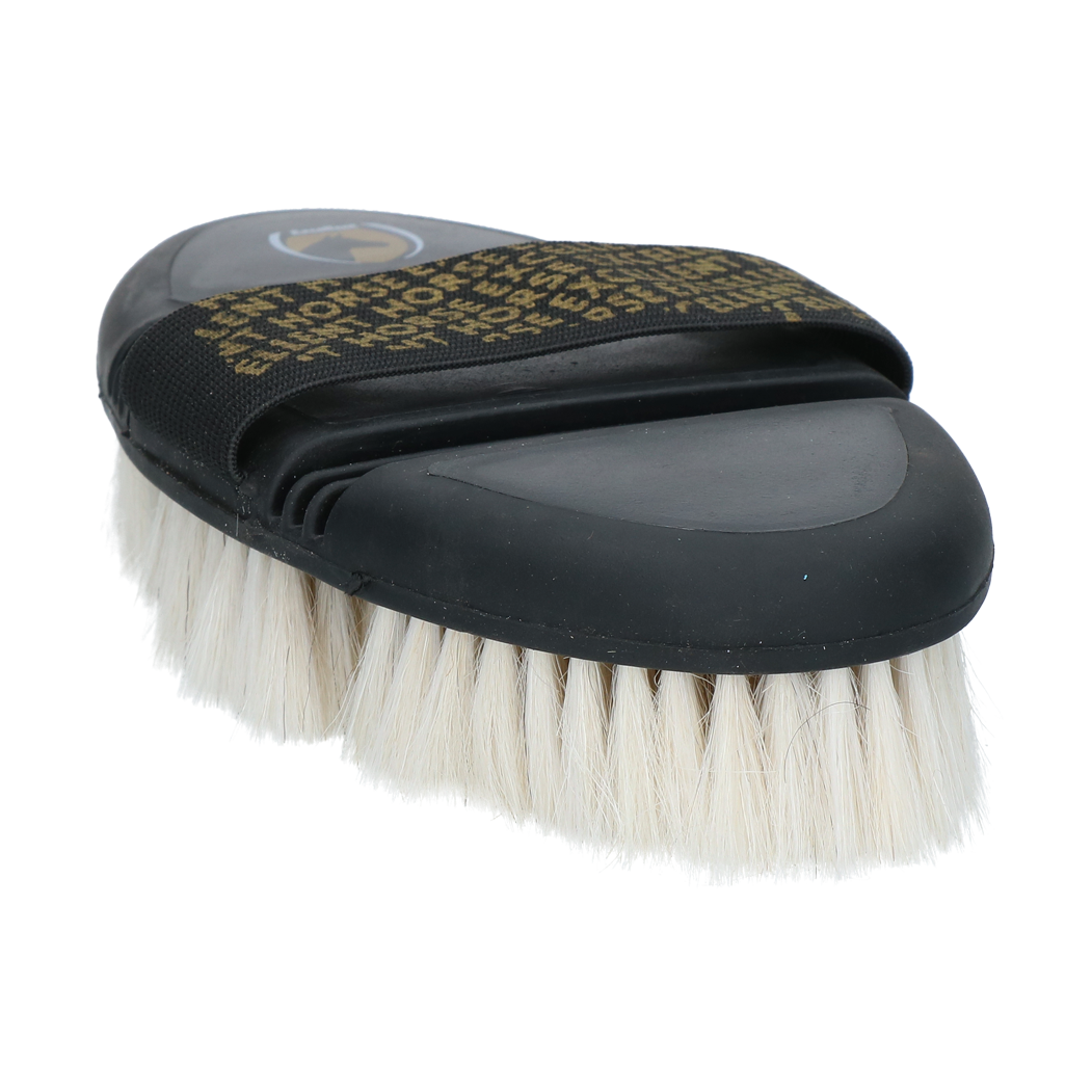Die Excellent Horse Flexi Brush Shine entfernt sanft Staub und Sand und sorgt für glänzendes Fell. Die superweichen Ziegenborsten sind ideal für geschorene Pferde und Pferde mit empfindlicher Haut. Dank des flexiblen Kopfes liegt die Bürste angenehm in der Hand und passt sich dem Körper des Pferdes optimal an.