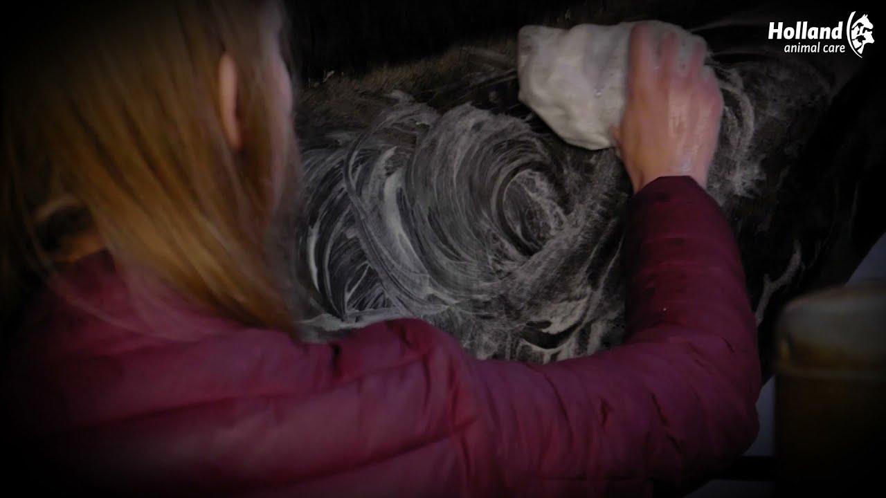 Anschließend einfach den Hi Gloss Shampoo Bar auf das gesamte Pferd einmassieren.