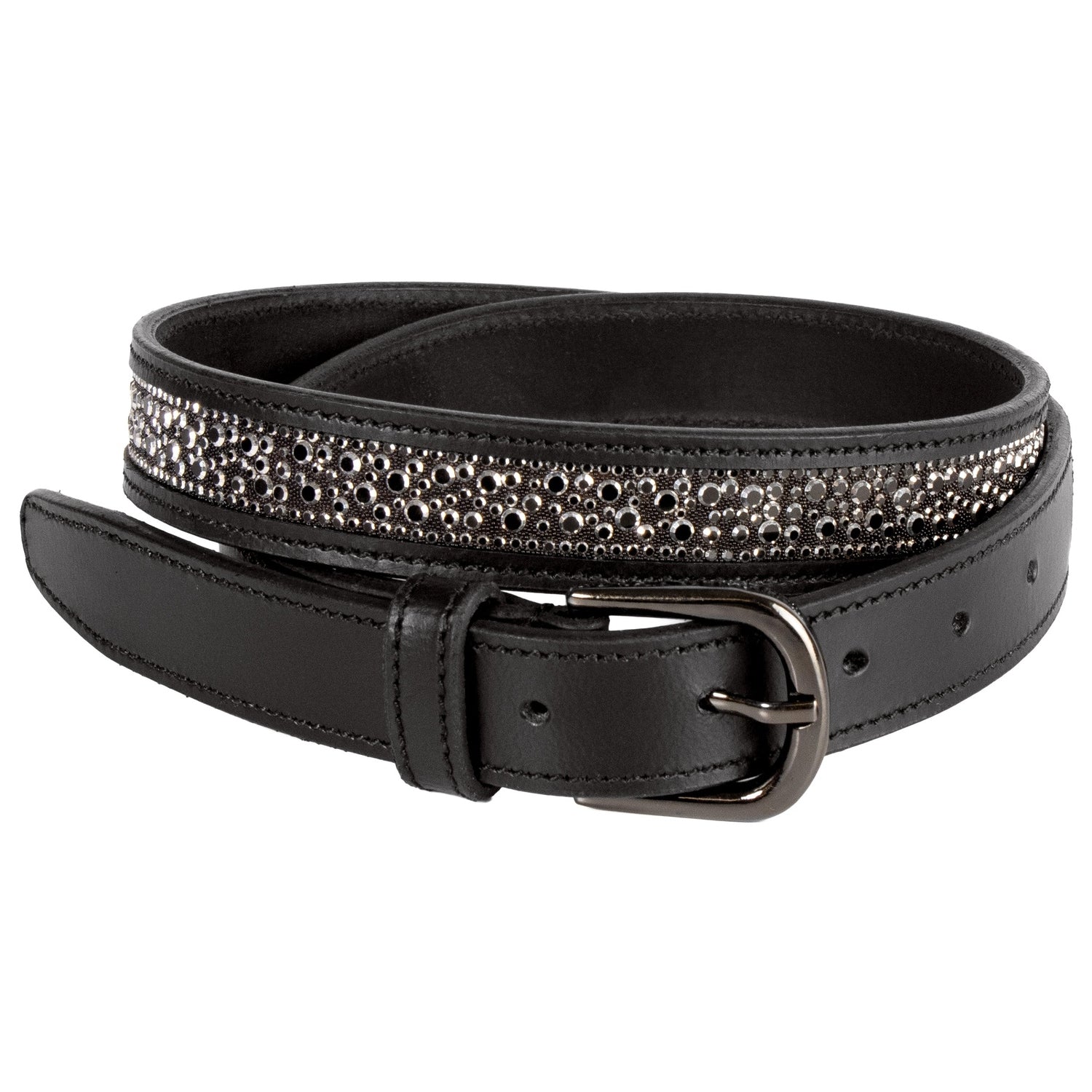 Luxuriöser Ledergürtel, aufwendig verziert mit funkelnden runden Kristallen.